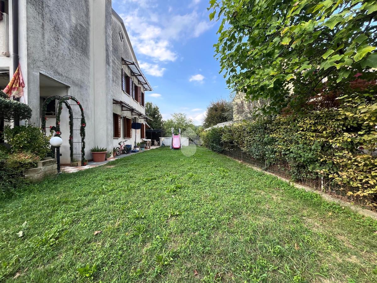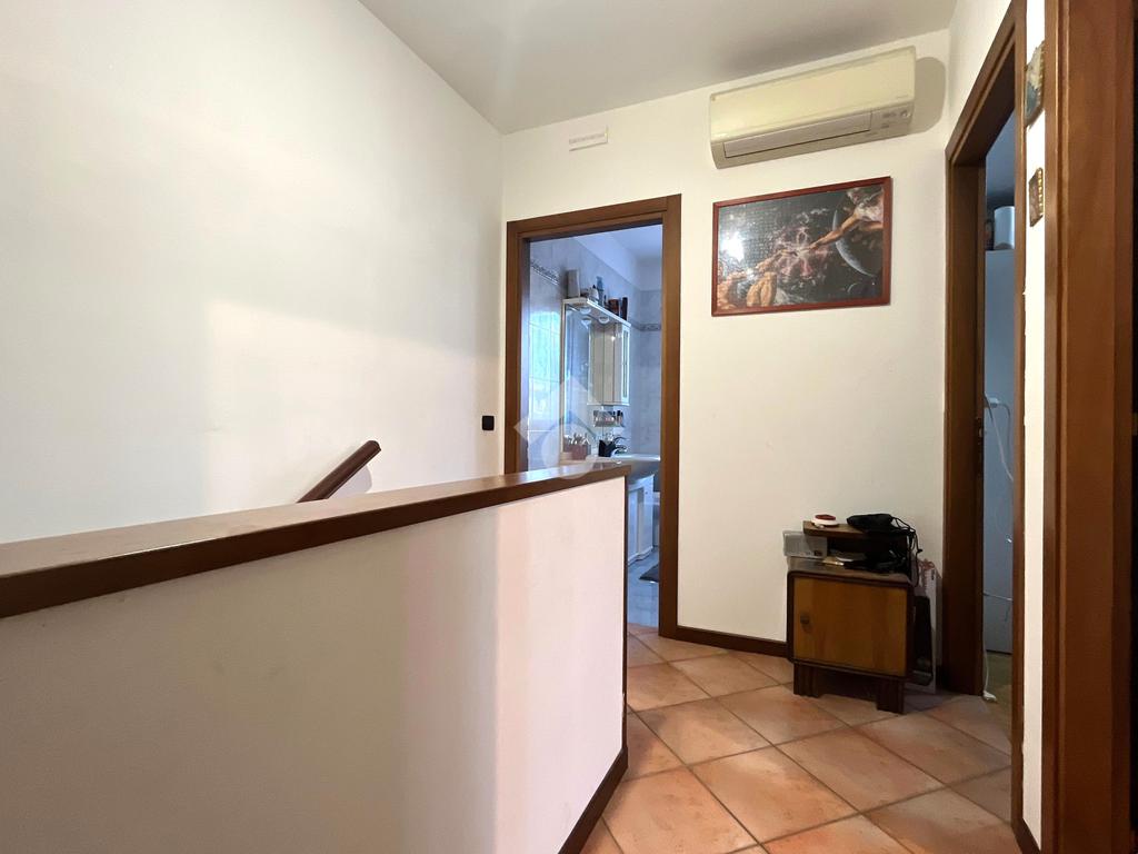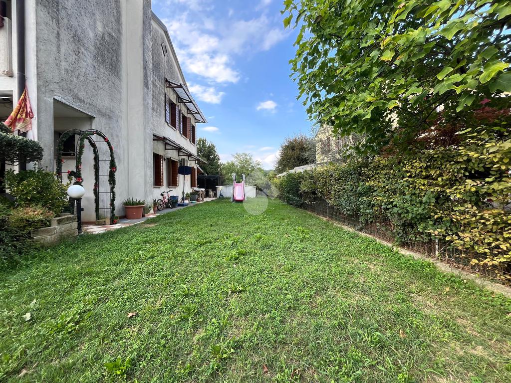 Nervesa della Battaglia: proponiamo in vendita una luminosa porzione a schiera, ideale per chi cerca ampi spazi interni ed esterni in una zona tranquilla e ben servita. Al piano terra vi è ampio soggiorno con caminetto perfetto per momenti di relax, cucina separata e funzionale, ed un locale lavanderia con bagno di servizio. Salendo le scale, al primo piano troviamo tre camere da letto ed un bagno finestrato con box doccia. La camera padronale è dotata di secondo bagno privato e terrazzo. Tramite una scala retrattile si può accedere ad un ampia soffitta con lucernario che potrebbe essere utilizzata come disbrigo o ripostiglio. Scendendo al piano interrato, c'è un garage doppio di circa 40 mq, un locale termico e un magazzino. All' esterno dell'abitazione vi è un giardino privato di circa 300 mq con l'impianto d'irrigazione ed un portico travato di 30 mq, perfetto per pranzi all'aperto e momenti di relax. Ulteriori dotazioni dell'abitazione, sono l'impianto fotovoltaico da 4 kw, un sistema dall'allarme perimetrale con telecamere per la vostra sicurezza e un impianto di climatizzazione. Anno di costruzione 1995.Abitazione di circa 210 mq complessivi. Ulteriori informazioni dei servizi vicini:Scuola primaria: 300m;Farmacia: 850m;Supermercato: 3 km;Farmacia: 850m.